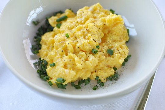 My own egg frying pan is a little Calphalon non stick omelet pan. Yours can be anything from a nonstick skillet to a cast iron skillet, it has to be something the eggs wont stick to. In my kitchen eggs are the only reason I have a nonstick pan in the house. We always have cream in the house ever since we discovered that Coffee Mate has added sugar in it. I make my own Canadian Bacon (Peameal Bacon if you are Canadian) from a recipe I found in the book Charcuterie, which takes seven days to do. We have ham usually left over from ham dinners, and bacon is there if I have more time.